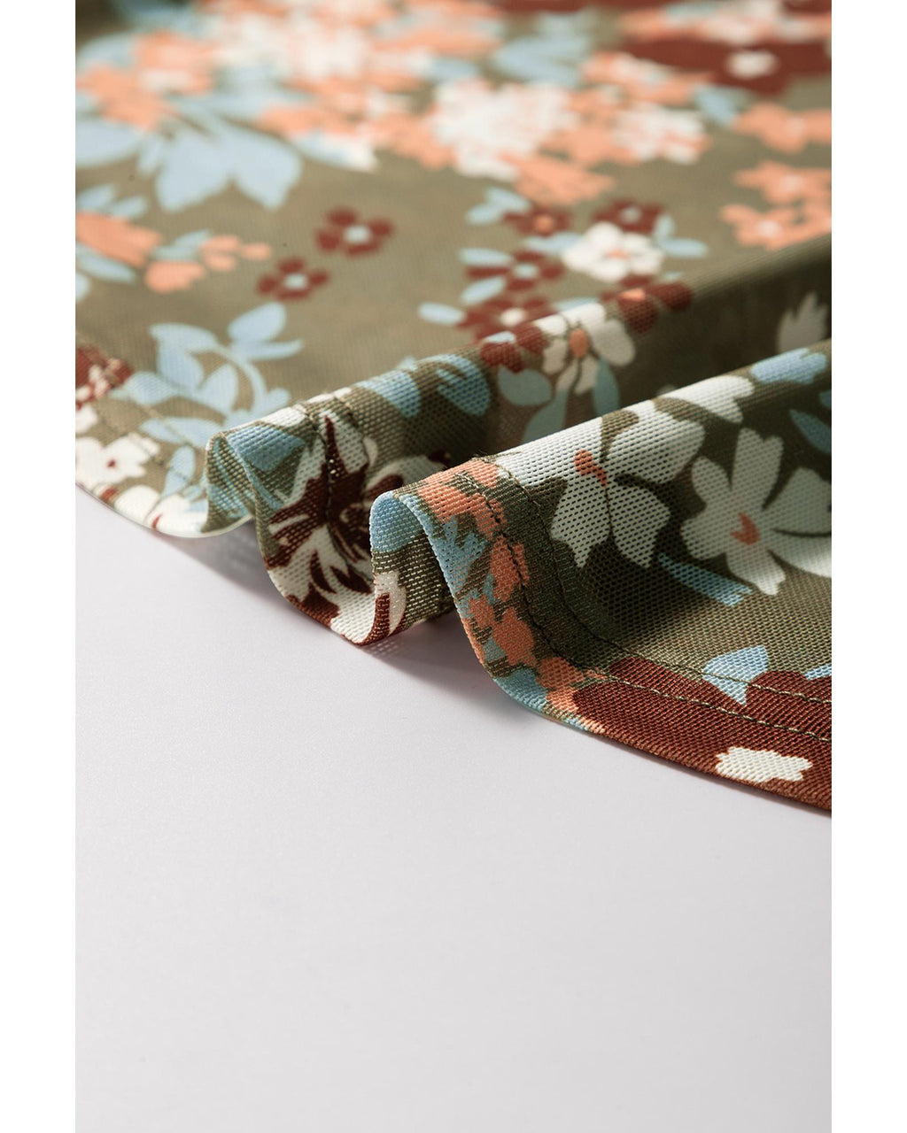 Green Floral Print Mesh Fitted Long Sleeve Top - M