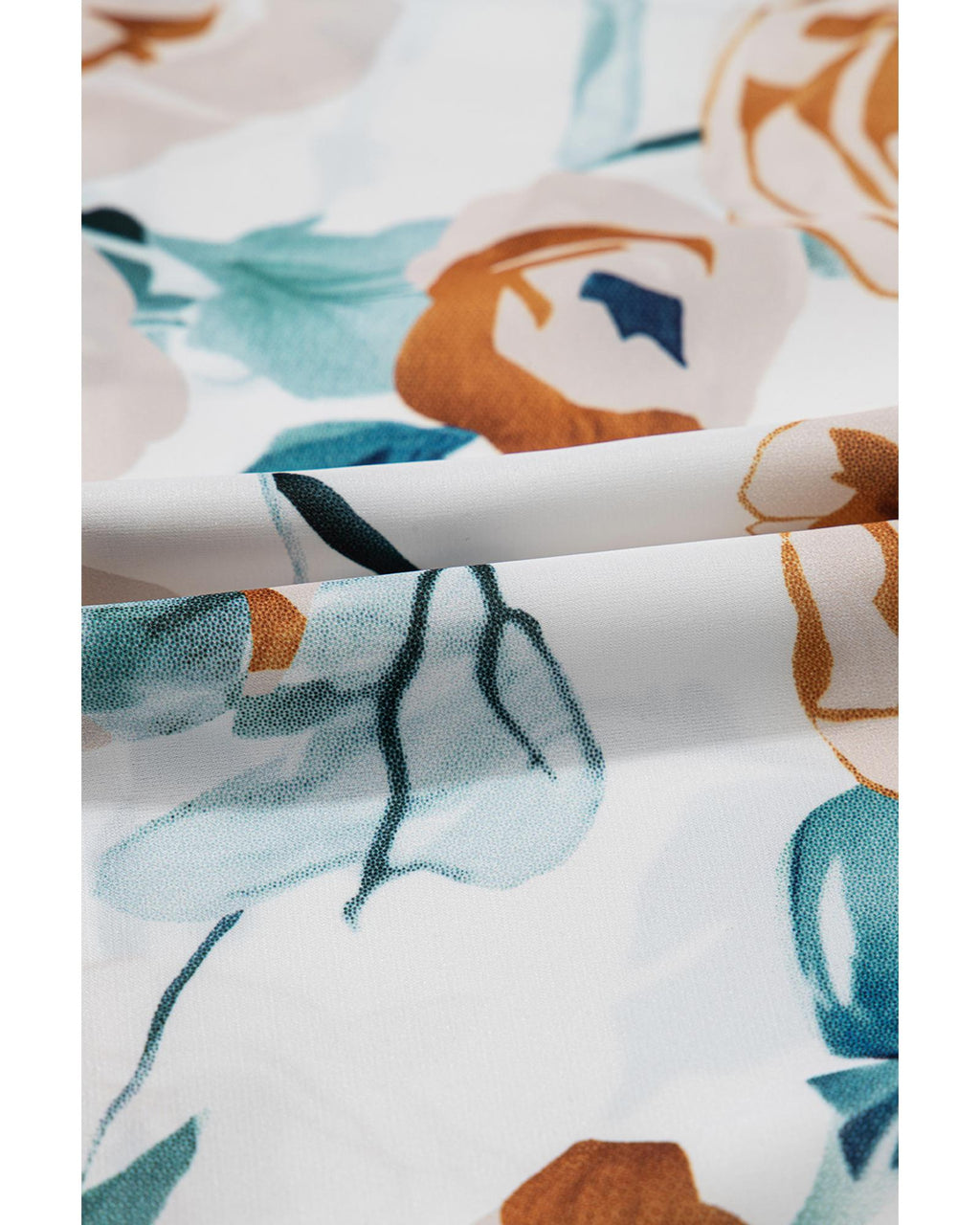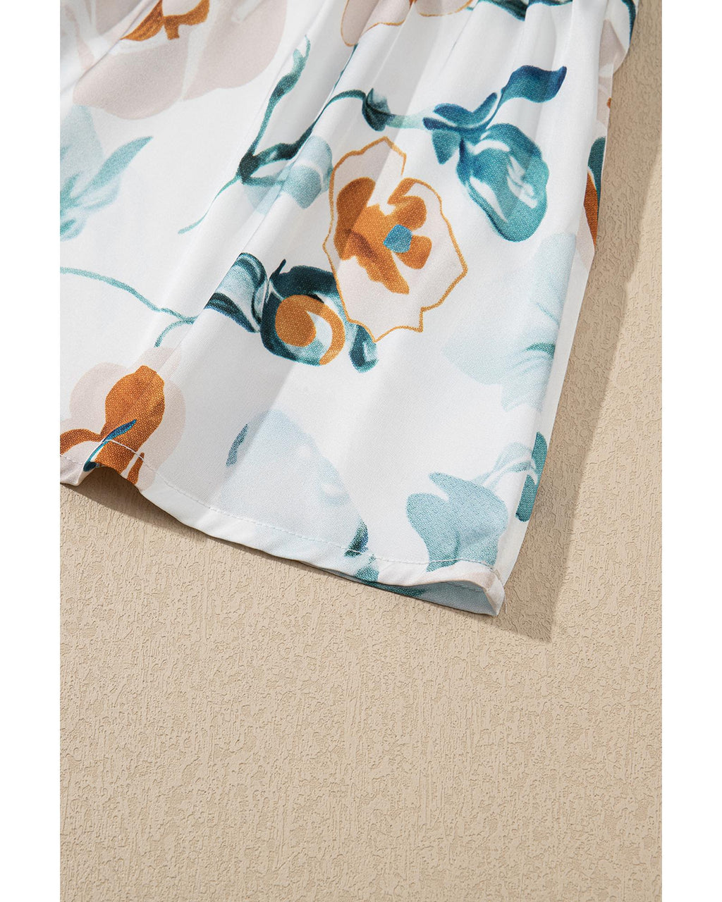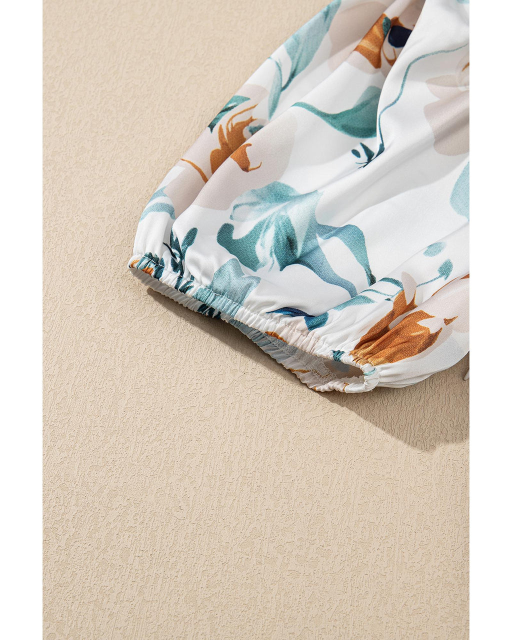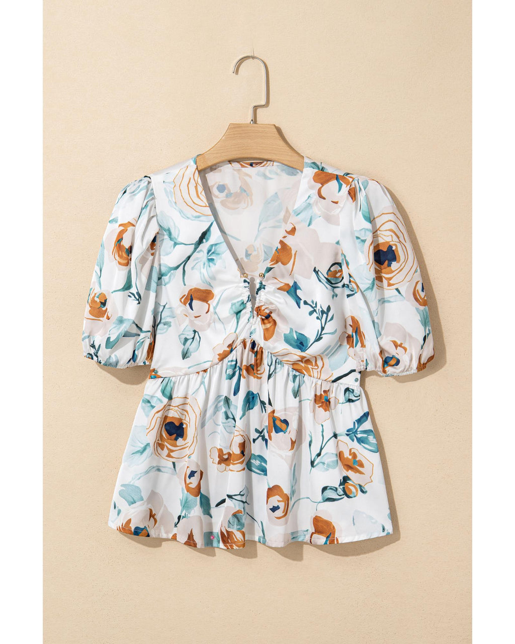 Green Floral Print Puff Sleeve V Neck Babydoll Blouse - XL