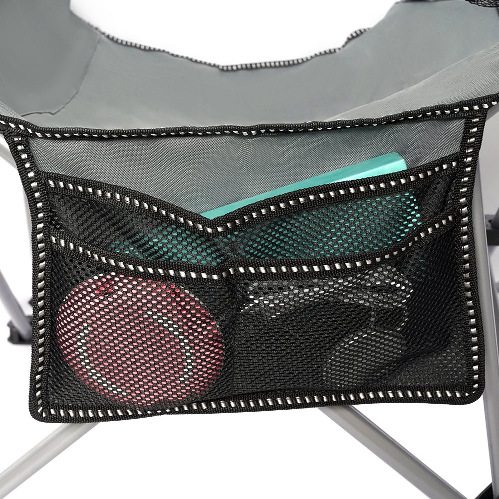 Crafted with high-quality Oxford cloth and sturdy steel pipe, this camping chair ensures both comfort and durability. The chair's side storage bag provides a convenient space to keep your essentials like drinks, mobile phones, iPads, books, and keys, within easy reach, eliminating the need to stand up frequently.