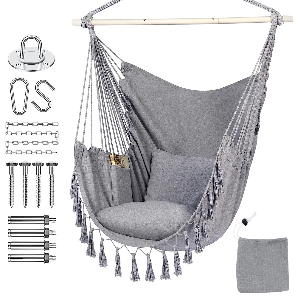 With its fashionable hanging tassels, this hammock chair adds a touch of elegance to your surroundings, making it a perfect addition to your home decor. Safety is our top priority, and our sturdy stand and anti-slip grooves on both sides ensure stability while preventing the rope from sliding.