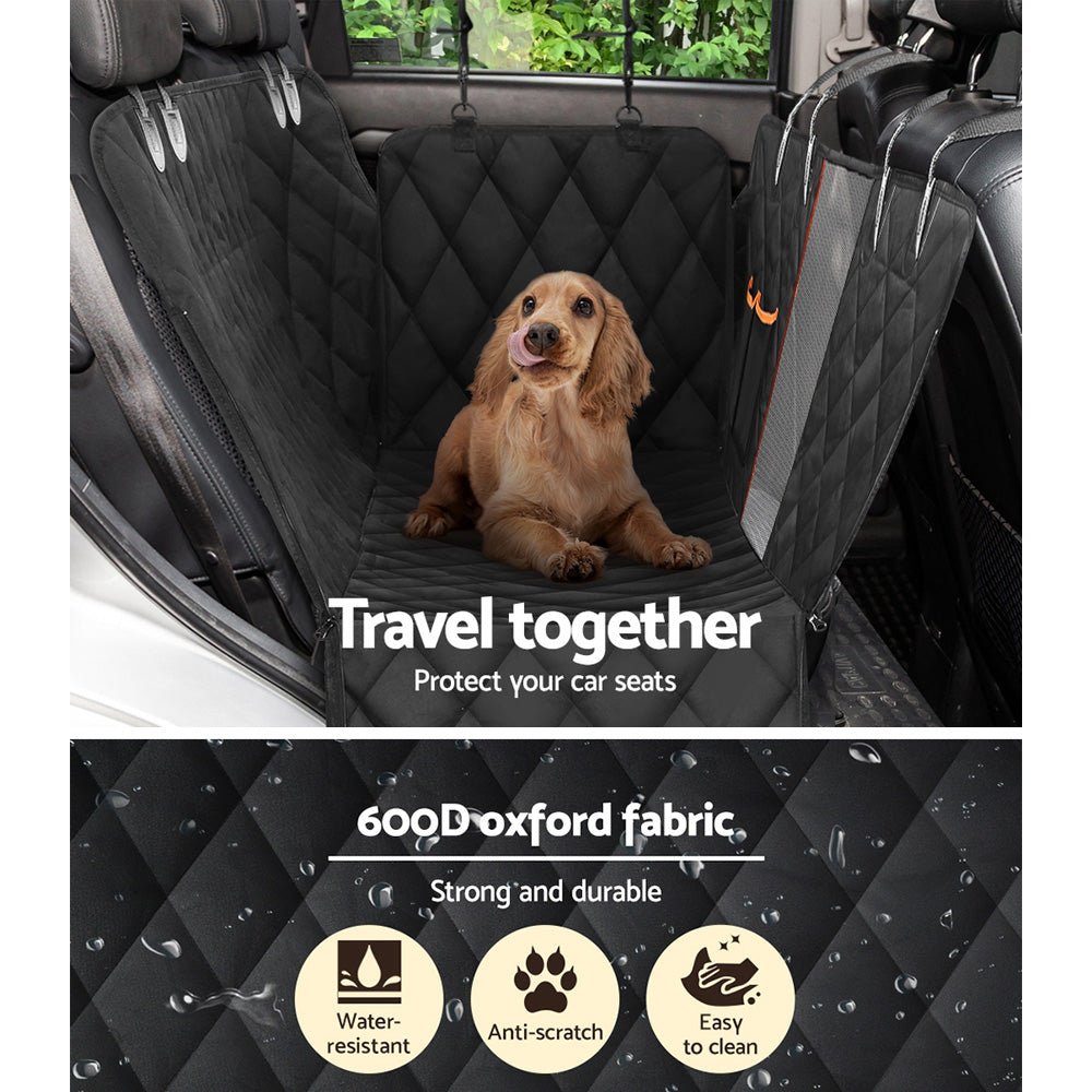Protect your car seat from dirt, scratches, and pet hair with our thoughtfully designed i.Pet pet car cover. It's made to suit most cars and helps save yourself countless hours vacuuming fur from your car seats. Our pet car cover is crafted from durable 600D oxford fabric to withstand the rigours of daily use. It's purposefully built to offer great resistance against scratches and moisture. You can use it in three different ways: hammock style, bench style, and tailgate style depending on what best suits the situation. The pet car cover is lightweight and foldable and features a front mesh for proper ventilation, an adjustable seatbelt for safety, and a pocket to store essentials. You can also detach the cover for cleaning or when not needed. Rest assured that our pet car cover will remain steady and won't slip off the seats. Additionally, this pet car cover is comfortable for your furry companion to sit and lay in and won't cause any distress. Get ready for your next long drive with your furry companion with our i.Pet's pet car cover.