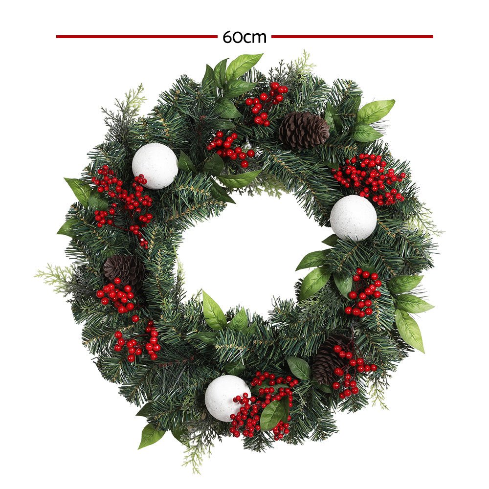 Additional ornaments: Artificial red barries, pine cones and baubles