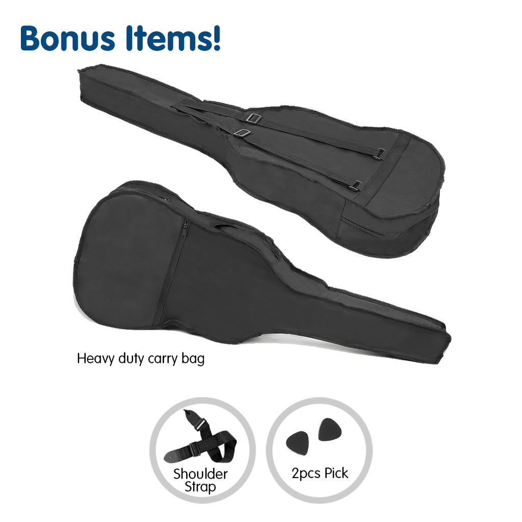 These 38-inch acoustic guitars are finely crafted for beginner to intermediate-level players. The Karrera high-gloss polished finish and excellent build quality of this hand-crafted instrument will really impress.