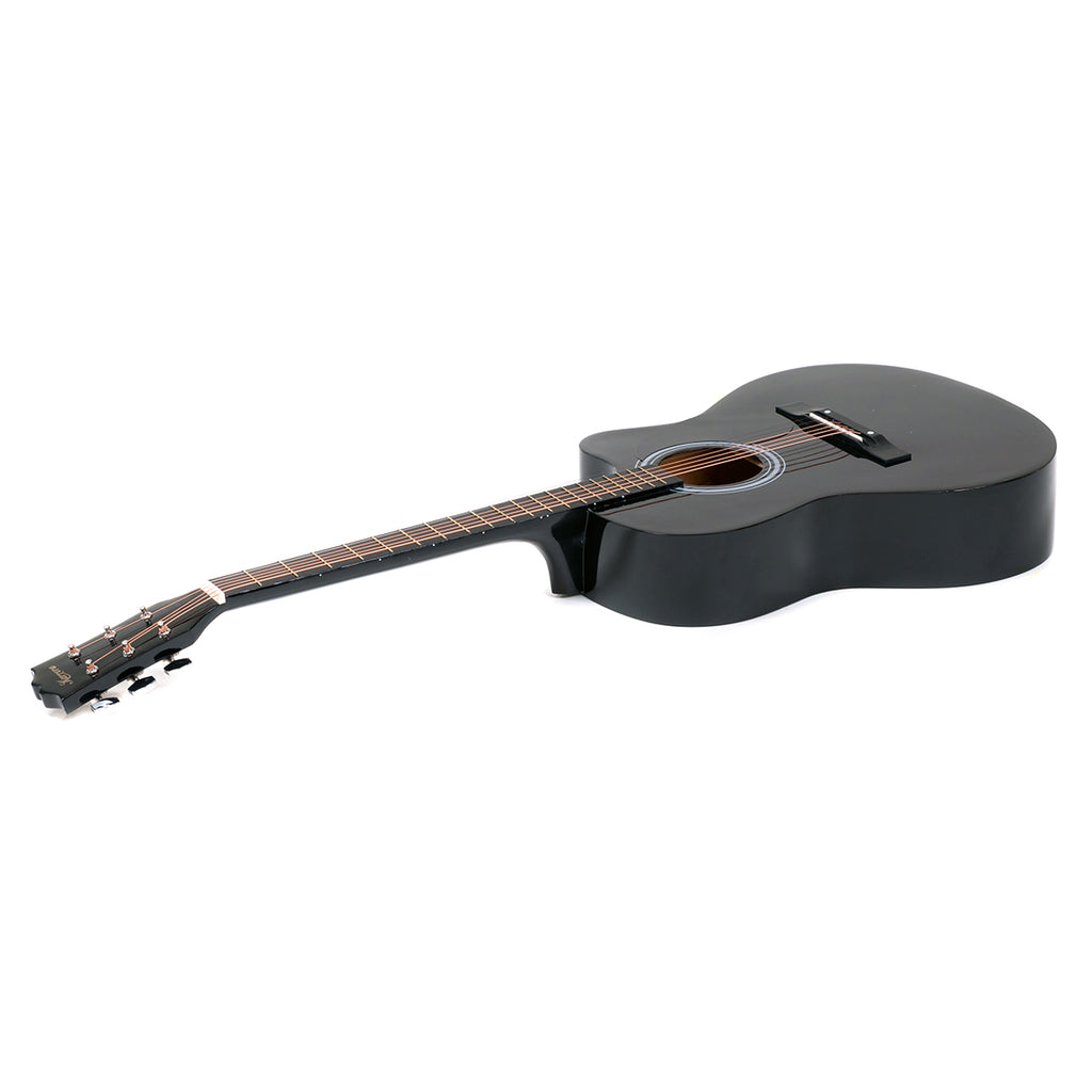 This full-sized, 40-inch guitar is ideal for taller players The cutaway allows for easier access to the top frets, so you can play and master the chords faster. This set also includes bonus strings, two guitar picks, a shoulder strap, and a protective carry bag.