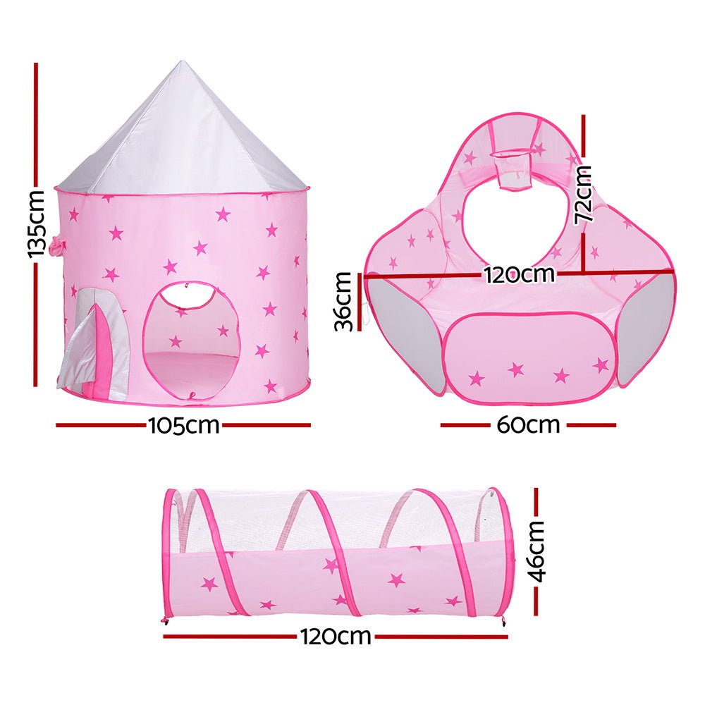 Give your children the gift of creativity and imagination with the Keezi 3-in-1 Kids Playhouse! This amazing playhouse comes with a wide variety of activities to keep your children occupied, but it is also designed with convenience in mind. It features a foldable design that fits neatly into the included carry bag, making it easy to set up and store away. Made from durable polyester fabric, the playhouse is designed to last long hours of play both indoors and outdoors. It features a ball pit with a fun basketball hoop, a fun crawl tunnel and a fun-shaped hideout with a breathable mesh window and roller shutter. Easy to store, clean and maintain, you and your kids will love the convenience and flexibility of the Keezi 3-in-1 Kids Playhouse!