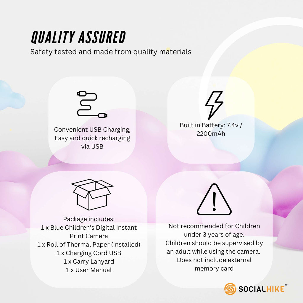 Looking for a fun and easy way to capture your child's unforgettable moments? Our Social Hike Kids Instant Print Camera is the perfect solution! Designed with young photographers in mind, this camera is packed with exciting features that make photography a breeze and tons of fun.