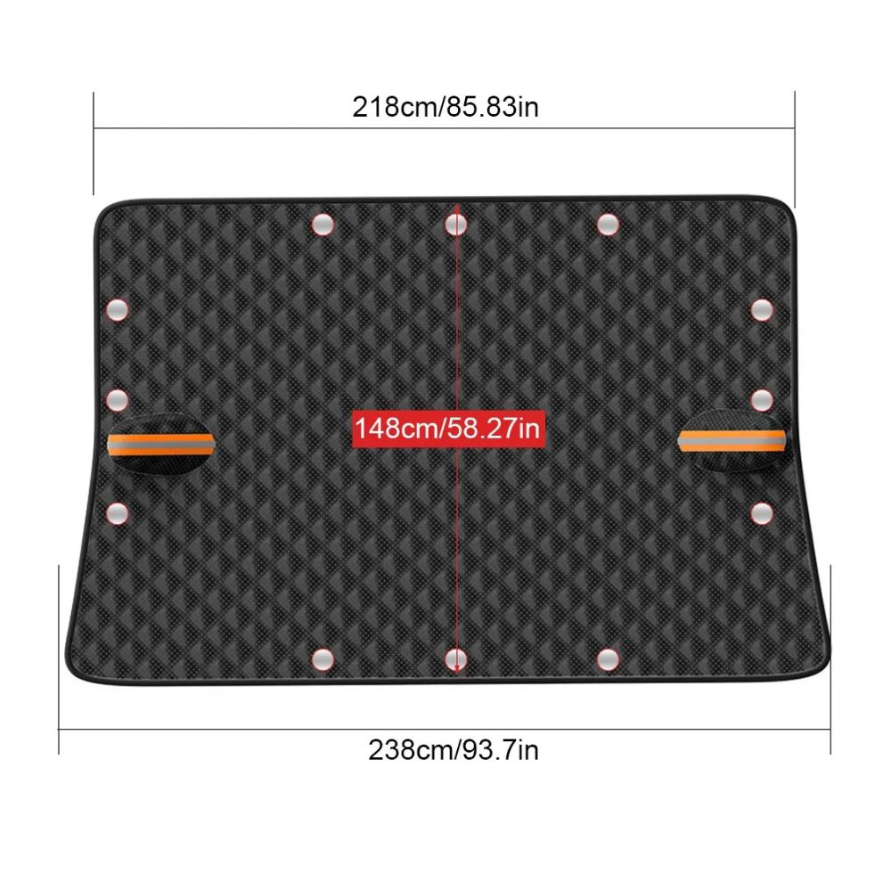 The Winter Car Window Snow Cover is designed to protect your car's windshield from snow, ice, and frost during the harsh winter months. Its large size and magnetic design ensure a secure fit, offering full coverage and easy installation.