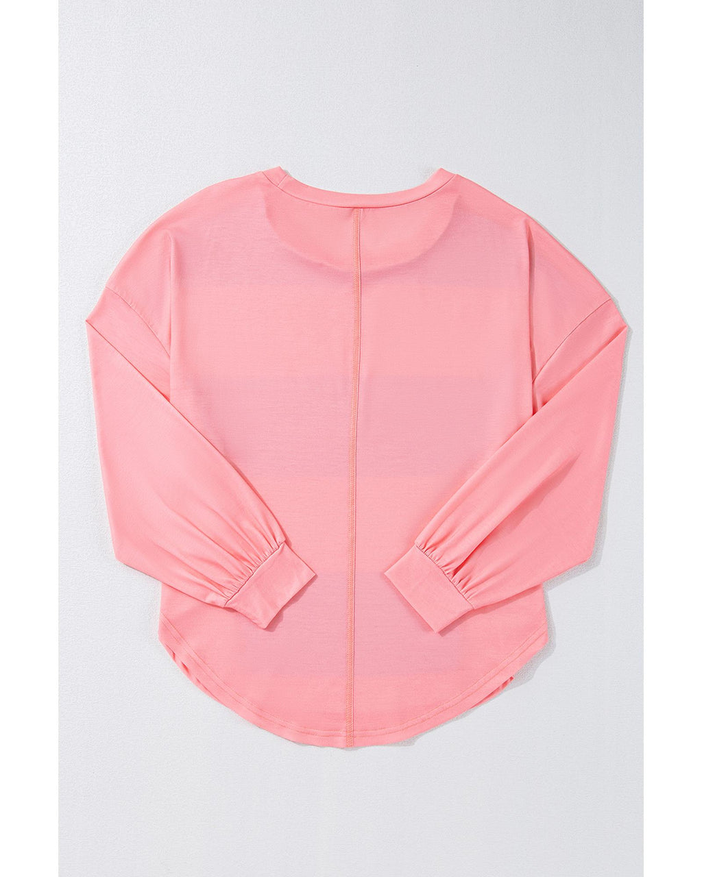 • Light Blue Colorblock Striped Drop Shoulder Loose Top