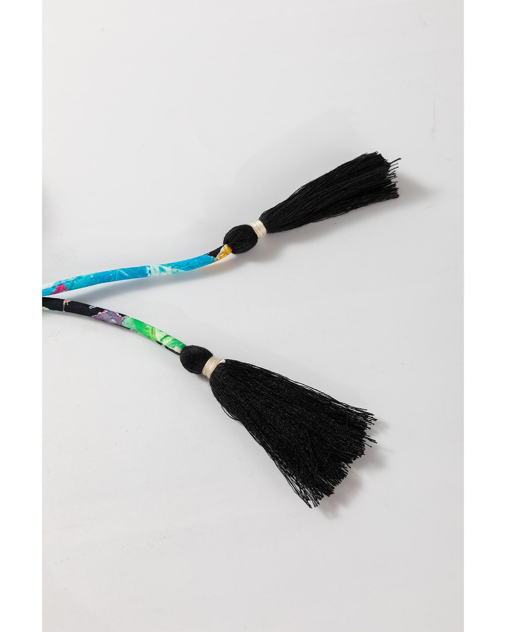 Multicolour Floral Print Bubble Sleeve V Neck Ruffled Blouse - S