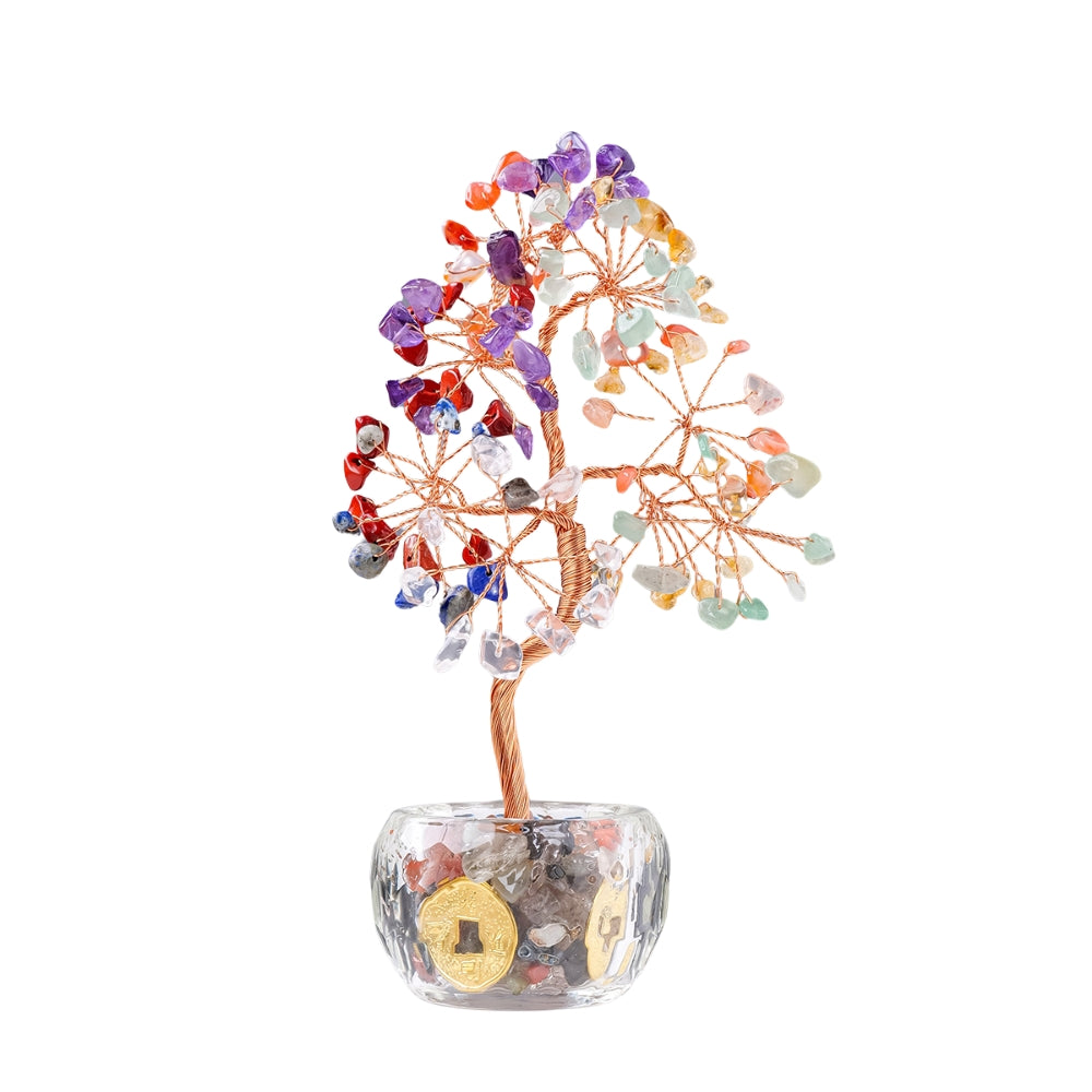 This Fortune Tree is not only a decorative item but also symbolizes positive energies and spiritual growth. The Tree of Life, a key element in this design, represents rebirth, fertility, and abundance. The combination of agate and crystal chip stones enhances healing energies and helps focus these energies in a positive way, making it a meaningful addition to any space.
