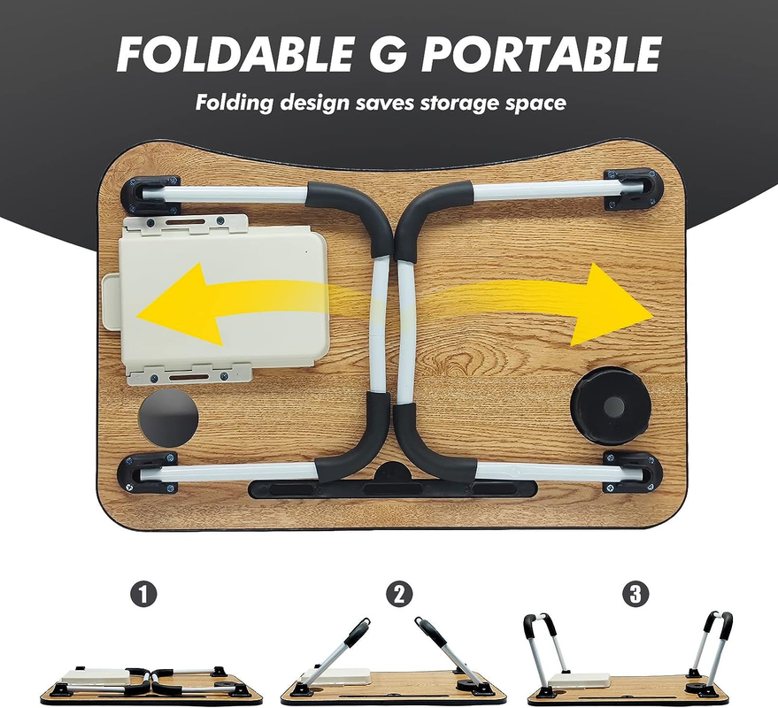 - Suitable Size: This laptop desk for bed is 60x40x28cm, perfectly suitable for notebooks of 17 inches and below. Besides, there is enough space for stretching your feet under the bed table. The folding laptop table.