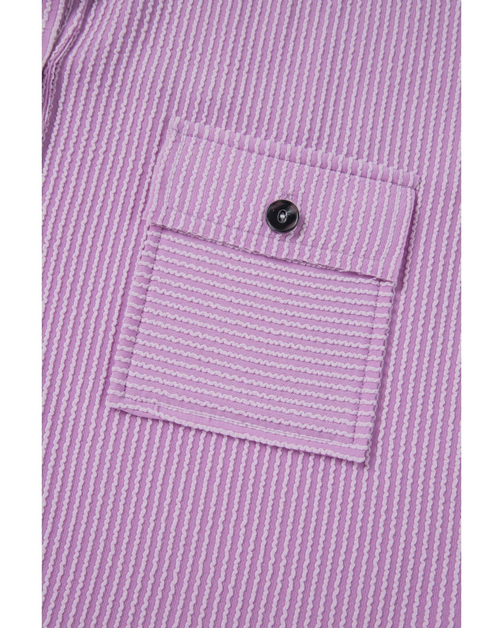 Orchid Bouquet Corded Flap Pocket Collared Buttoned Short Sleeve Blouse - M