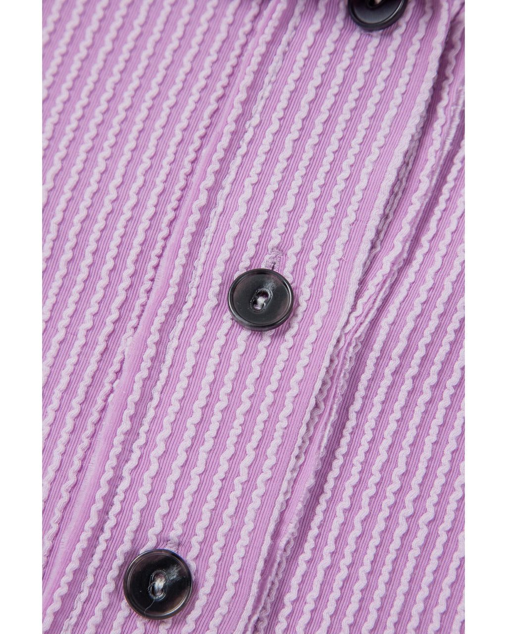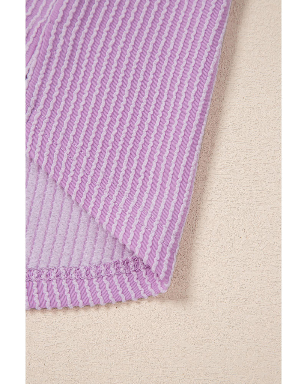 Orchid Bouquet Corded Flap Pocket Collared Buttoned Short Sleeve Blouse - S