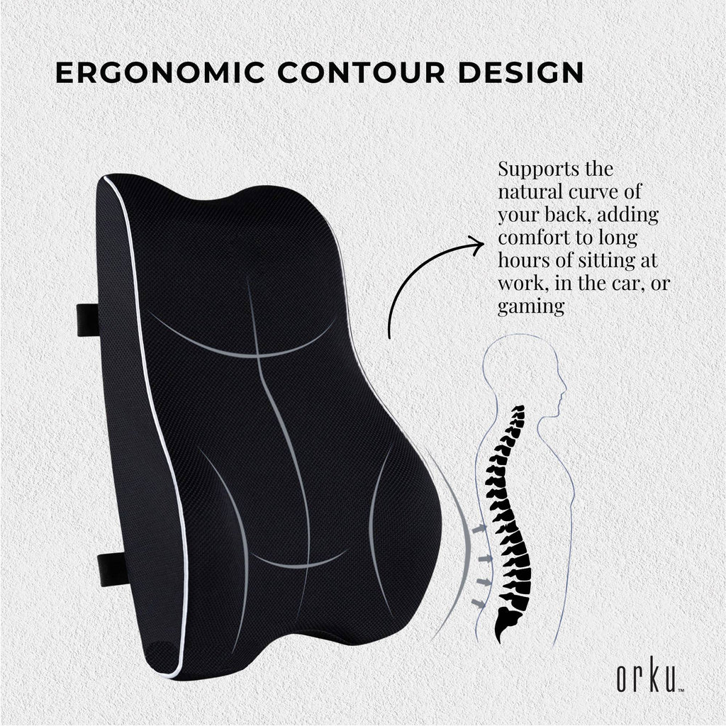 The Orku Ergonomic Lumbar Support Cushion adds comfort to long sitting sessions with its contoured design and premium memory foam. Lightweight and portable, it fits most chairs including office, car, and gaming seats. The breathable, removable cover is soft, washable, and made from safe, hypoallergenic materials.