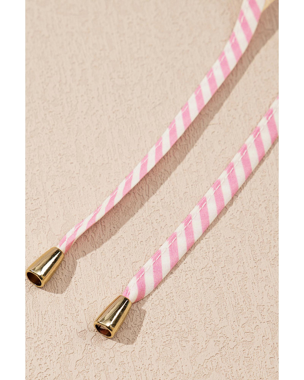 Pink Floral Print Drawstring V Neck Peplum Blouse - S