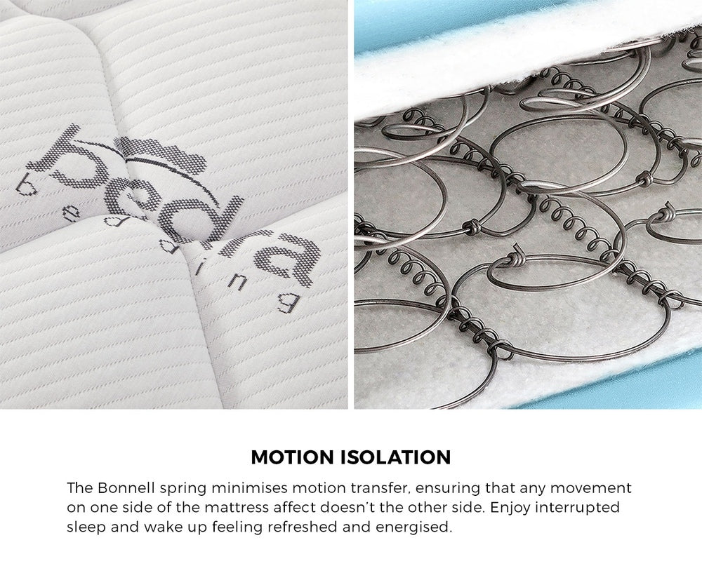 The set includes a premium spring mattress with a 7-layer construction, offering medium-firm support, motion isolation, and full body alignment for a restful sleep.