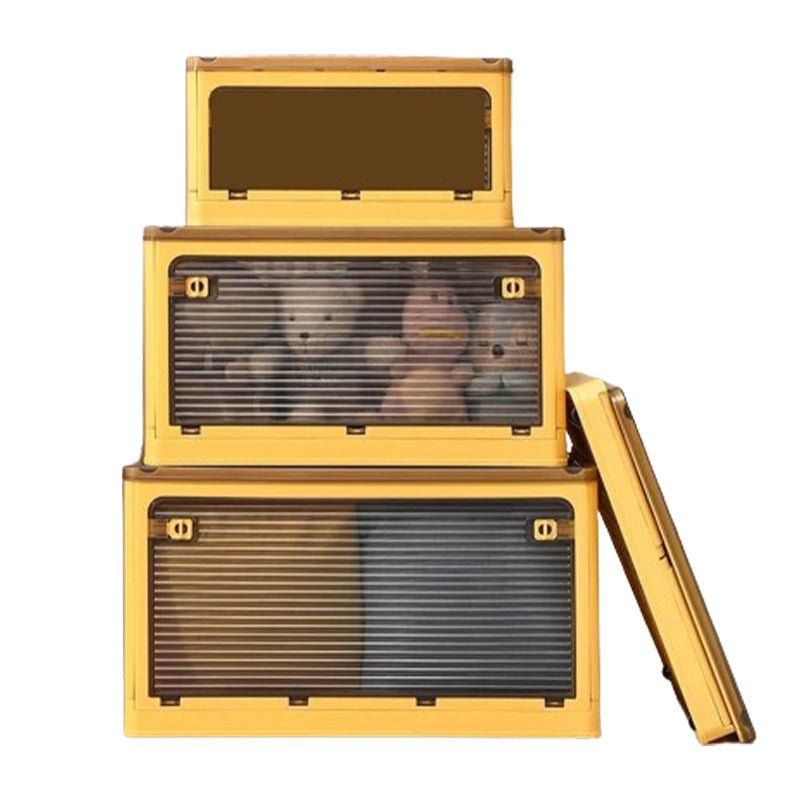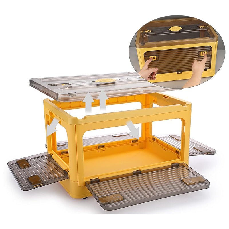 Experience the convenience and versatility of this Clear Plastic Foldable Storage Bins with Lid & Wheels. Made from high-quality, odor-free plastic, these durable containers are designed to keep your belongings organized and easily accessible.