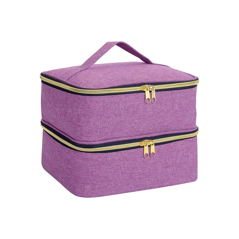 For added convenience, the organizer includes dedicated storage space for nail tools. The upper section is perfect for brushes and dotting tools, while a bottom zipper pocket provides ample space for manicure accessories. With handles on each bag, the organizer is easy to carry, making it perfect for travel.
