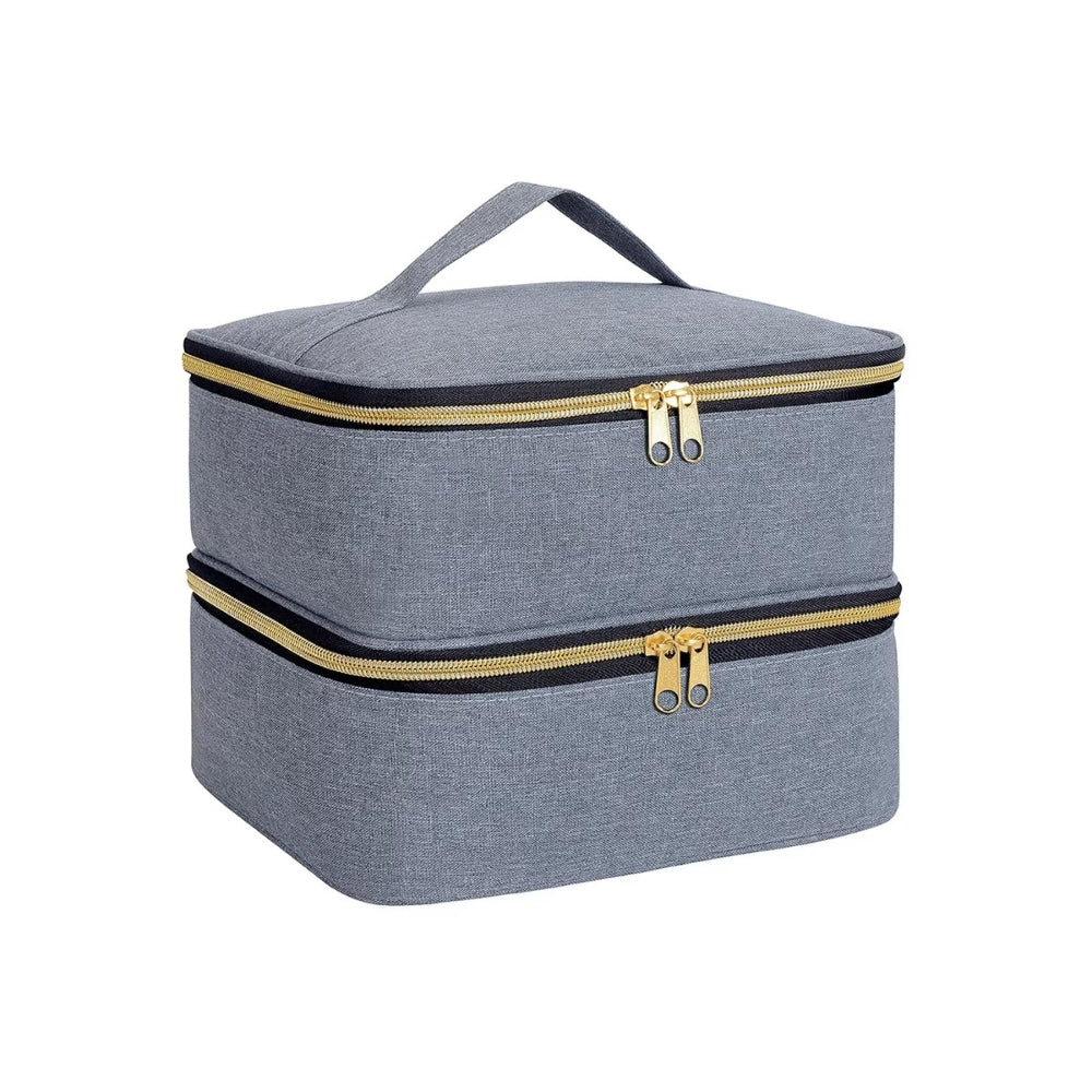 Featuring a detachable design, the organizer has two separate bags connected by a middle zipper. Each bag includes customized dividers, capable of holding up to 30 bottles. The dividers are flexible and detachable, allowing you to easily accommodate different bottle sizes and clean the organizer with ease.