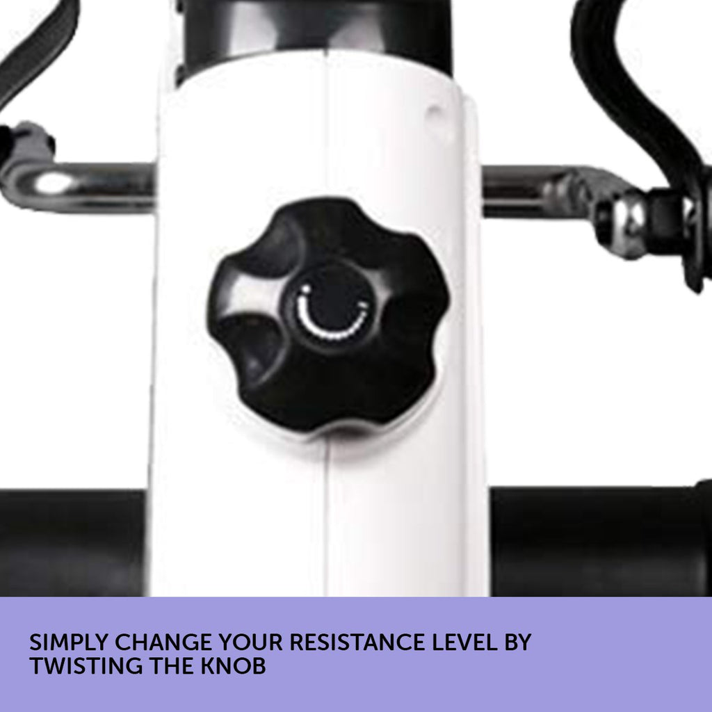 This mini bike pedal exerciser is portable, lightweight and simple to use. It has an adjustable resistance knob for desired resistance while training. Also, the mini pedal exerciser has adjustable foot straps that are secured with screws for small to larger feet.