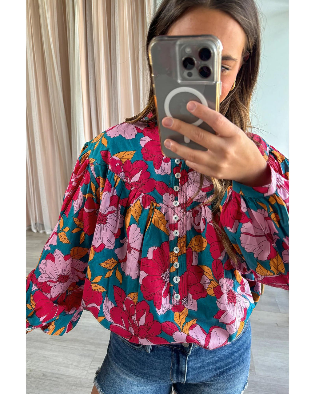 - Red floral printed blouse