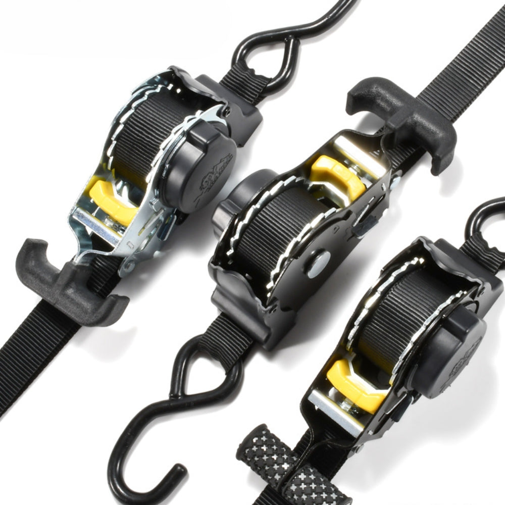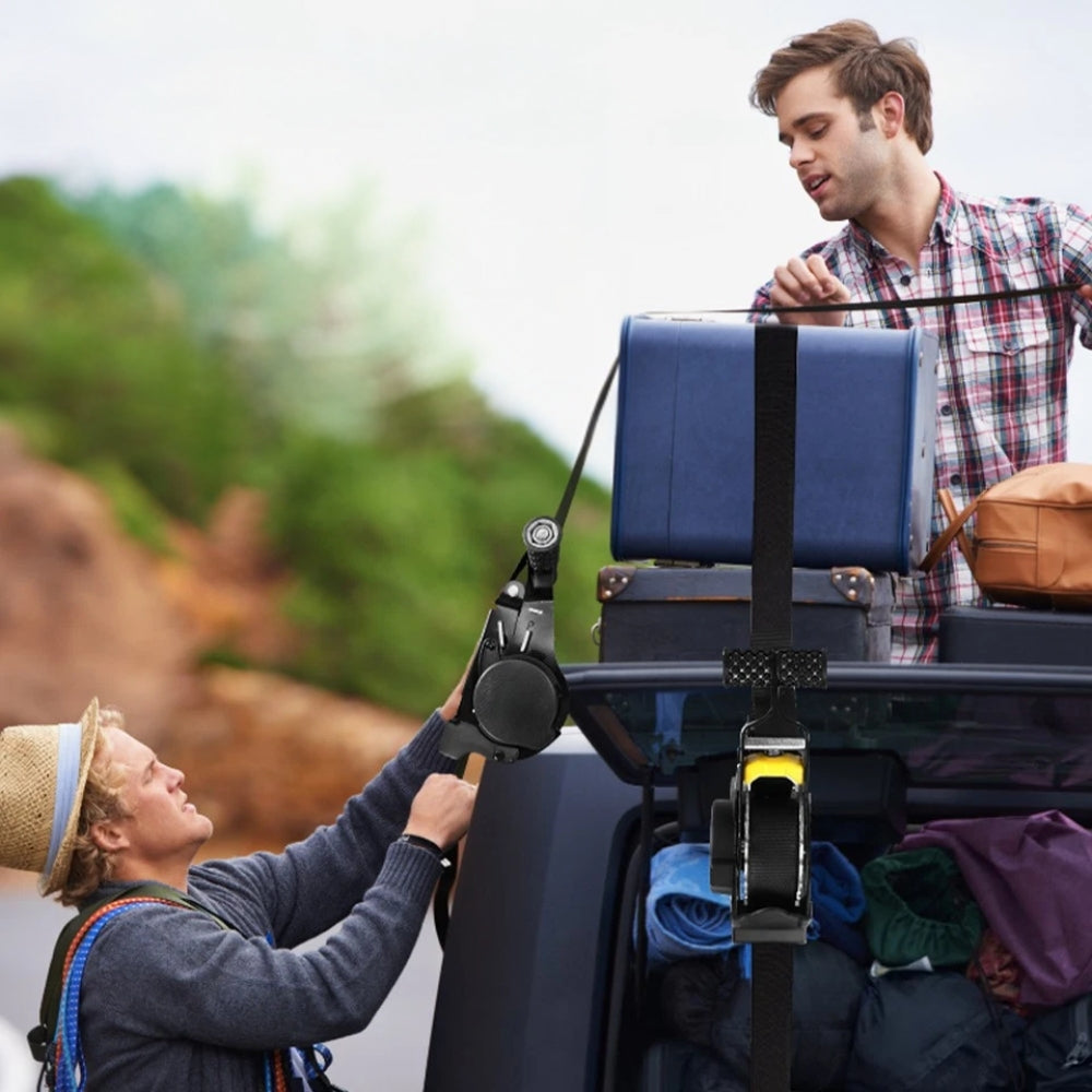 This heavy-duty strap combines a retractable belt system with a robust ratchet tensioner, ensuring that your luggage, motorcycles, or equipment remain firmly in place, even on rough roads.