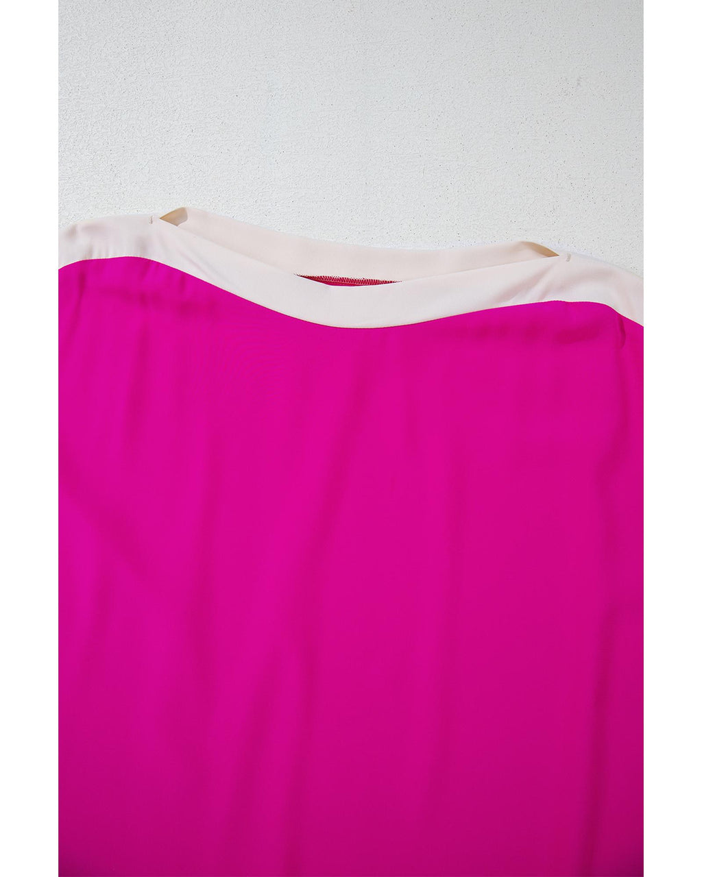 Rose Red Oversized Color Block Boat Neck Tunic Blouse - M
