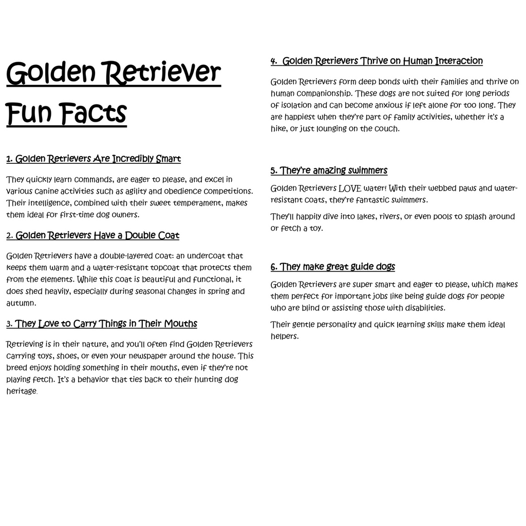 A breed-specific fun fact sheet
