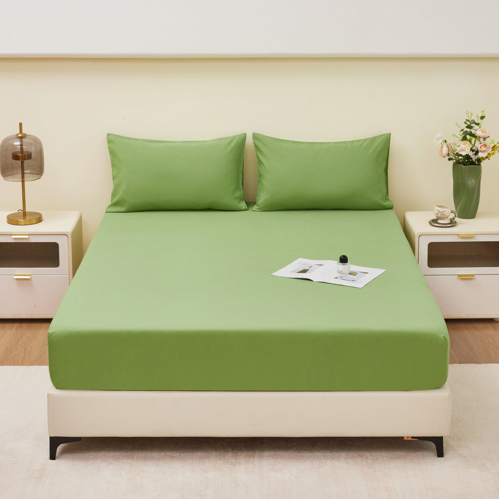 This fitted sheet boasts a solid color design that adds simplicity and elegance to your bedroom decor. It is a versatile piece that can easily blend with any bedding setup. Featuring a dyed pattern, it adds a subtle touch of color, making it a stylish and practical addition to your sleep space.