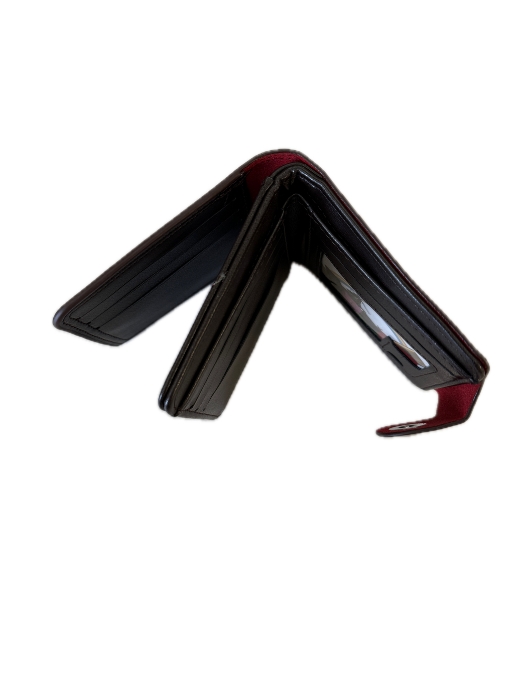- Compartments: Multiple card slots, ID window, and bill compartment