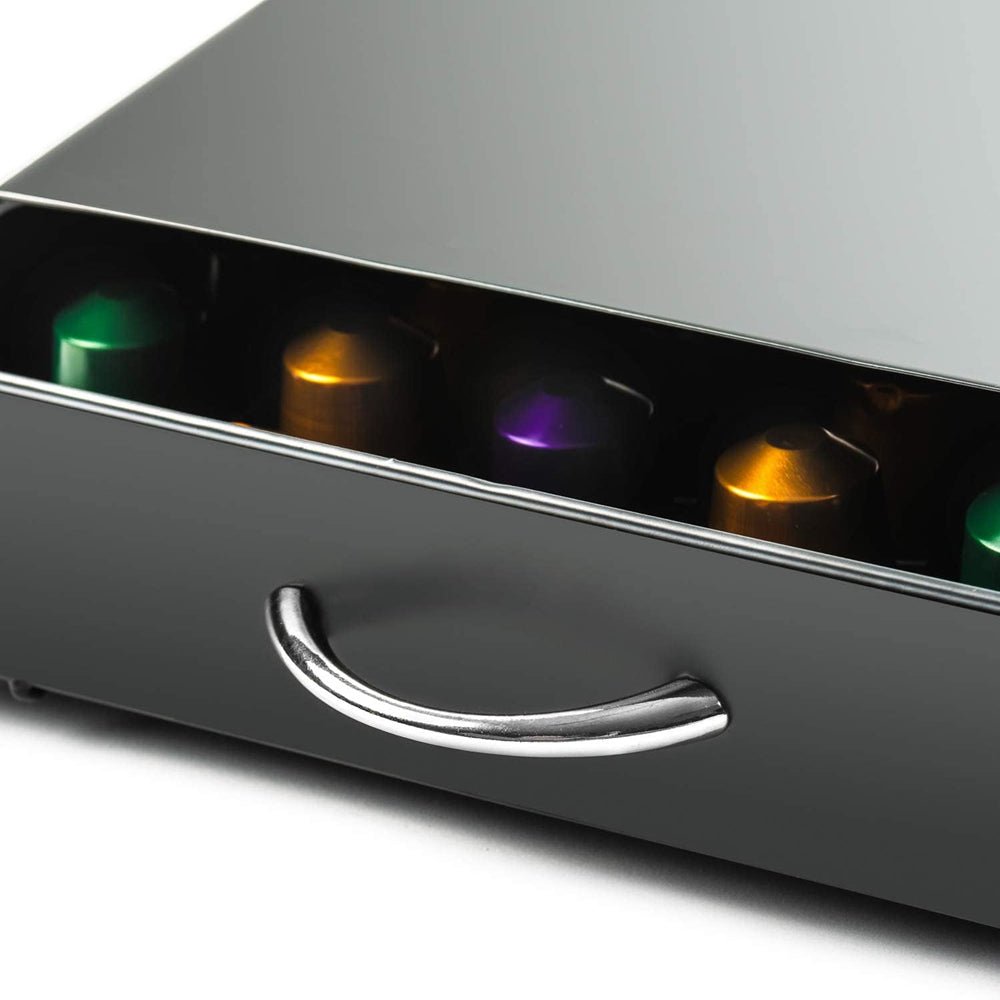 3. Quality Build: Crafted from durable iron and finished in sleek black powder coating, this coffee pod holder is designed to last. The sliding drawer is constructed for easy access to your coffee capsules, and the entire unit can be easily wiped clean. Non-slip grips on the underside ensure stability on countertops.