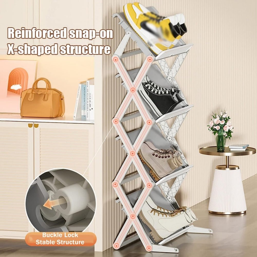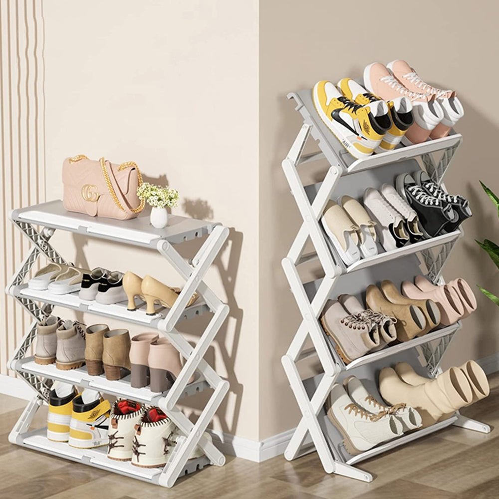 Experience effortless shoe organization and versatile storage options with the STORFEX Dual Modes Placement Folding Shoe Rack. Optimize your space and keep your shoes neatly organized in a convenient and stylish manner.
