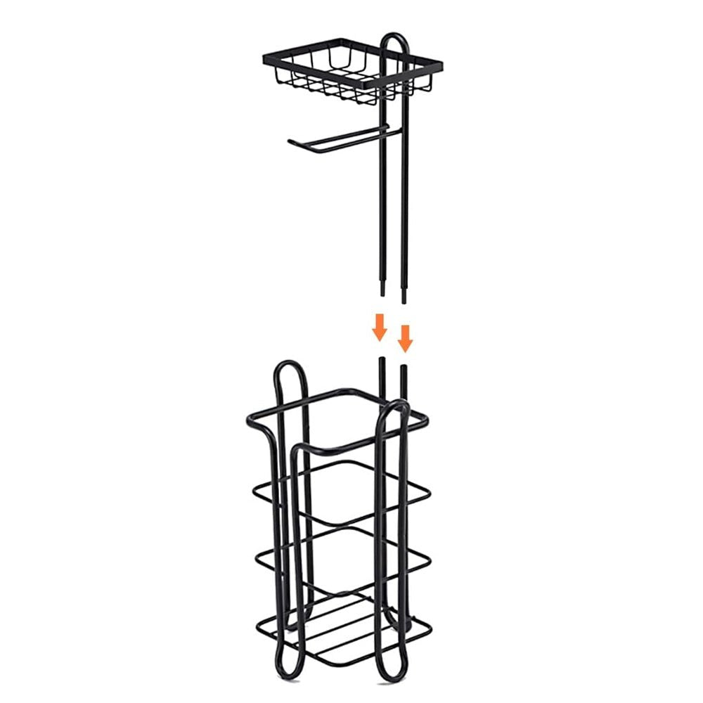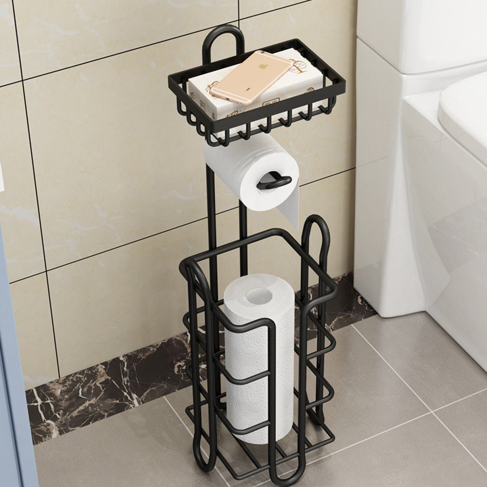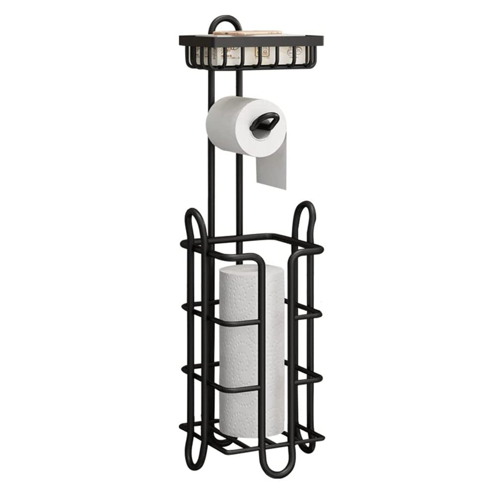 Made of high-quality iron material, this toilet paper holder stand boasts a sleek and modern design that will complement most home decor styles. Its black finish adds a touch of elegance to your bathroom.