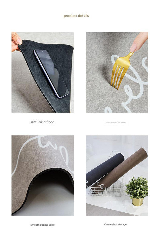 Step onto a dry and secure surface with our innovative Quick-Dry Bath Mat. This advanced floor mat is designed to absorb water in just 3 seconds, leaving your feet instantly dry and preventing water from being tracked through your home. The top layer is a soft, non-slip suede-like fabric that is gentle on your feet, while the bottom features a natural rubber base with an anti-skid texture for strong adhesion and grip, even on wet floors. Its superior water absorption capabilities help to prevent the growth of bacteria. Durable, scratch-resistant, and easy to store by simply rolling it up, this mat is a safe and stylish addition to any bathroom.