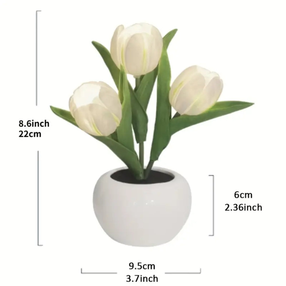 The Tulip Night Light, with its warm LED glow, it creates a cozy and calming environment, making it the perfect bedside companion for a restful night. Made from high-quality materials, this lamp is sure to elevate the look of any room.