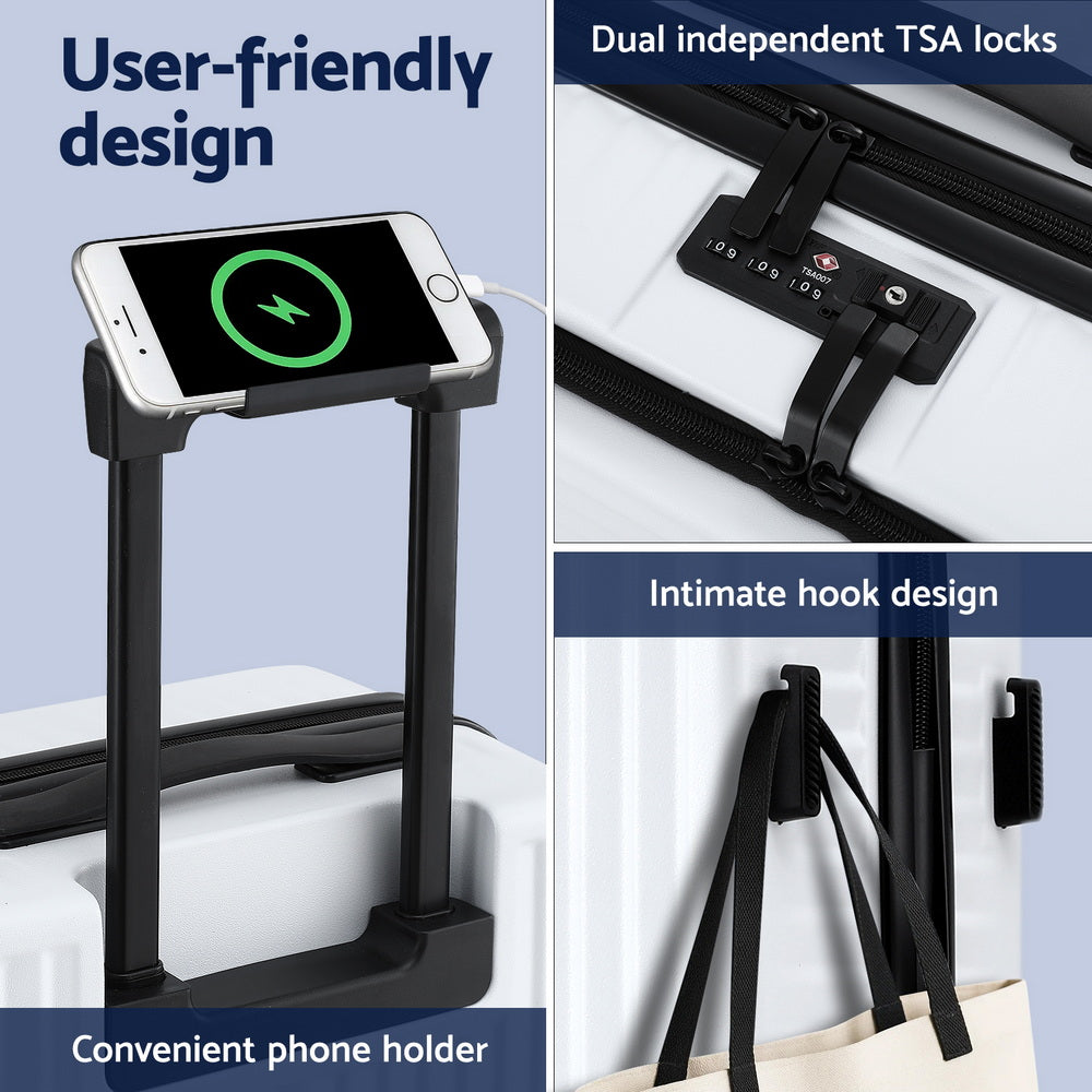 Travel in style and convenience with Wanderlite 20" carry-on front pocket luggage featuring a quick-access front pocket for your phone and travel essentials, plus a padded laptop compartment that fits up to 15.6" devices.